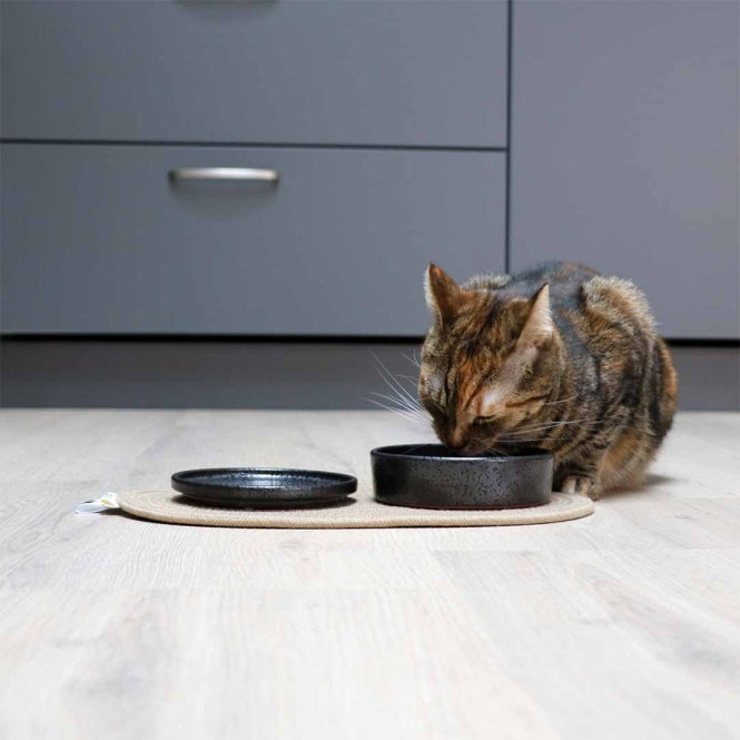 Heeft je huisdier soms de neiging om alles vies te maken tijdens het eten en drinken? De Placemat Phil van D&D HOME is een katoenen beschermset waarop je de bakjes van je huisdier kunt plaatsen om de vloer schoon te houden. Katoen heeft ook een goed vochtabsorberend vermogen voor het geval je huisdier iets morst.