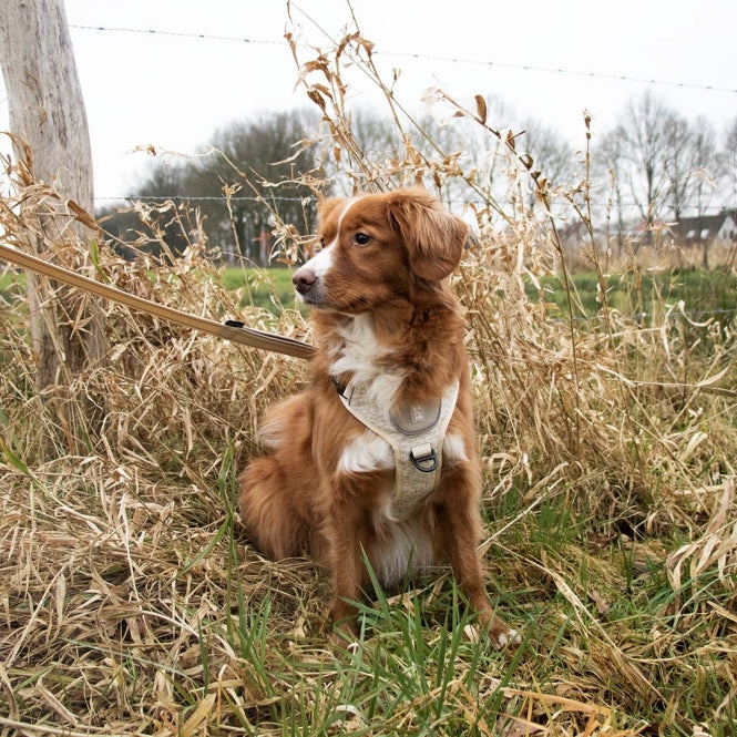 Om de vacht en huid van de hond te beschermen tegen schuren, zijn de meeste riemen en gespen bedekt met zachte, ademende materialen. Bovendien drogen de lichtgewicht maar hoogwaardige stoffen die voor zowel de binnen- als buitenkant worden gebruikt snel, wat erg praktisch is als je hond graag gaat zwemmen.