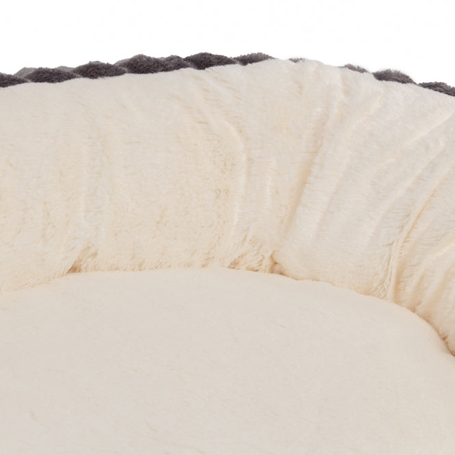 De beige, fluweelzachte en pluizige voering zorgt voor een knusse en comfortabele omgeving. Gemaakt van hoogwaardige materialen, biedt dit bed de perfecte combinatie van stijl en comfort.