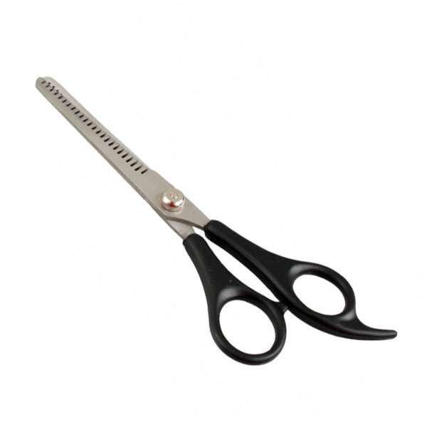 De dubbelzijdige uitdunschaar is geschikt voor het uitdunnen en stylen van de vacht. Zwaar gematteerd haar kan met de juiste zorg worden geknipt.