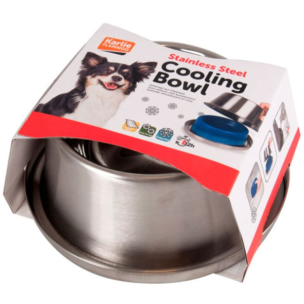 Deze roestvrijstalen kom koelt het drinkwater van je hond aangenaam op warme dagen.