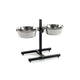 Deze voerstandaard voor twee voerbakken is stabiel en eenvoudig in hoogte verstelbaar.