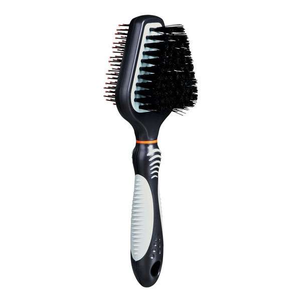 Deze dubbelzijdige borstel is ideaal voor een zachte verzorging van de boven- en ondervacht.