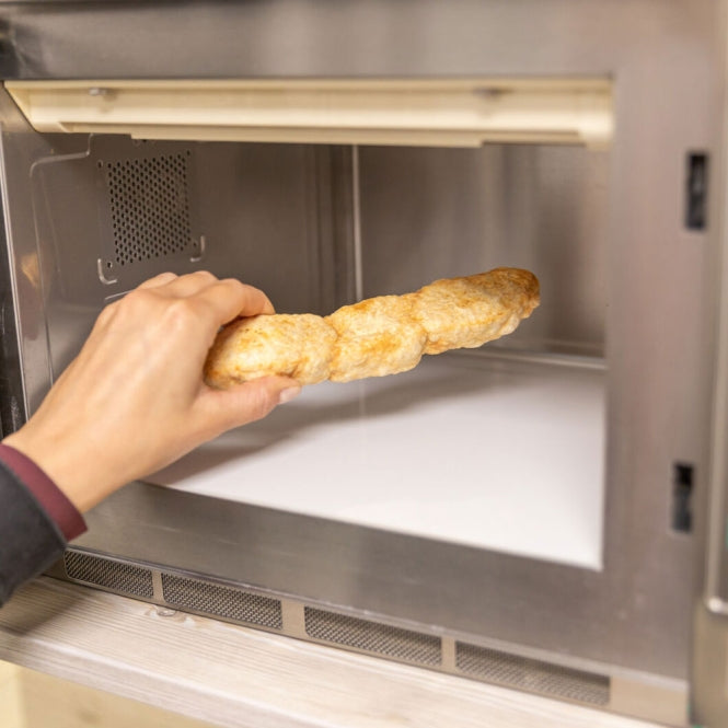 Als uw hond moeite heeft met het kauwen van de kaas omdat deze te hard is, of als er kleine stukjes overblijven, kunt u de kaas onder toezicht 45 tot 90 seconden in de magnetron verwarmen. Door de kaas in de magnetron te verwarmen, neemt het volume toe, waardoor deze knapperiger en makkelijker te kauwen wordt. Laat de kaas afkoelen voordat u hem aan uw hond geeft.